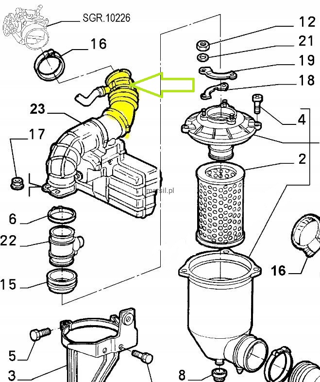 Ein Draht verbindet die Drosselklappe mit dem Resonator.