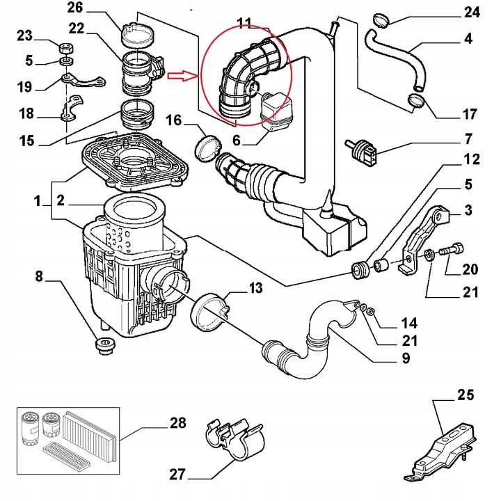 Łączy przepływomierz z rurą dolotową turbosprężarki.