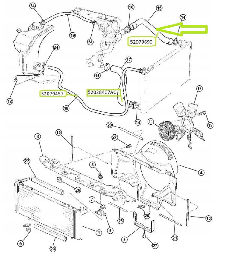przewód chłodnicy (łączy pompę wodną silnika z wlotem do chłodnicy)